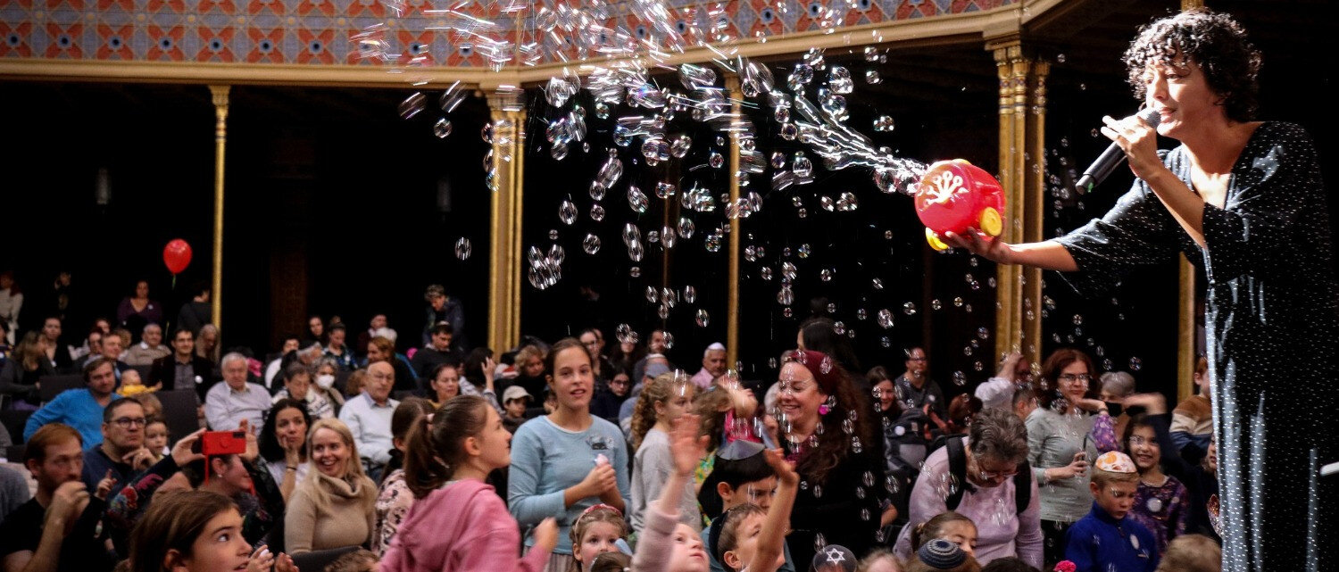 A fellépők szívvel teli, magyar és héber nyelvű dalai egytől-egyig elkápráztatták a hallgatóságot. A kicsik számára buborékfújó, képzeletbeli hangszeres játékok, ritmusos táncok és meseszerű történetek színesítették az élményt.