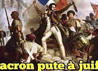 A „Francia sárgamellényesek tüntetése antiszemita fordulatot vett” című cikkében az Ynetnews.com arról ír, hogy a Párizs és Marseille között vezető A6-os autópályán egy hatalmas molinót feszítettek ki, amelyen az olvasható: „Macron a zsidók kitartottja”. A felirat azt sugallja, hogy Emmanuel Macron francia köztársasági elnököt a zsidók irányítják.