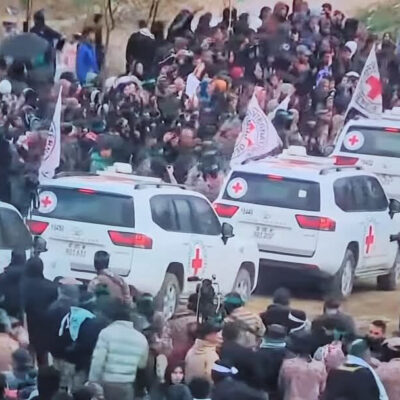 Vöröskereszt képviselőinek a gázai övezetben csütörtök reggel.
