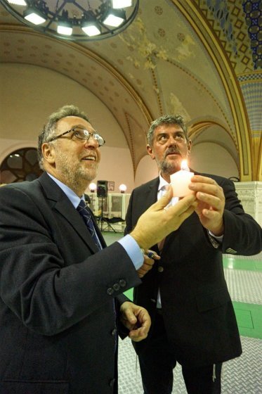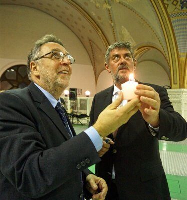 A lebilincselő előadás után Heisler András, a MAZSIHISZ elnöke, valamint a körzet világi vezetője, Petró Gábor gyújtotta meg a hanukia első gyertyáját. Árvai Gábornak a közösség egy meglepetés tortával kedveskedett a születésnapjára.