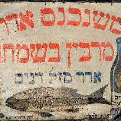 A cégérekhez, üzletportálokhoz vagy hirdetésekhez hasonlító bádogtáblát Ichák Eizikovits készítette 1927-ben, és elvileg a Czernovitzi Zsidó Történelem és Kultúra Múzeumának állandó kiállításán szerepel. A múzeum egyelőre még elérhető honlapja sokféle online tartalmat is kínál: nézzék meg, az érdeklődésükkel is támogatva az ukrajnai kollégákat! – zárul a múzeum írása.