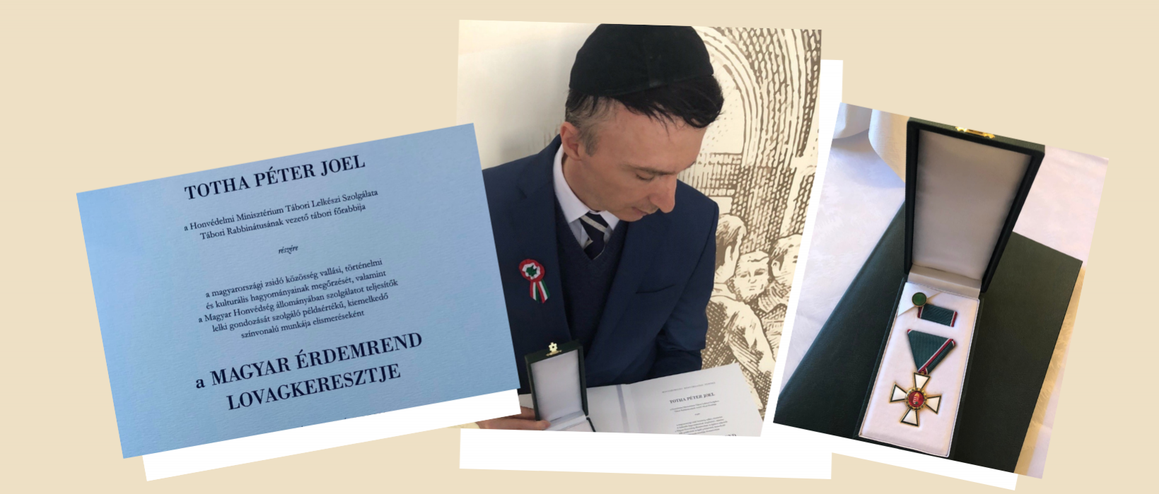 Nemzeti ünnepünk alkalmából a Magyar Érdemrend Lovagkereszt kitüntetésben részesült Totha Péter Joel, a Honvédelmi Minisztérium keretén belül működő Lelkészi Szolgálat Tábori Rabbinátusának vezető főrabbija.