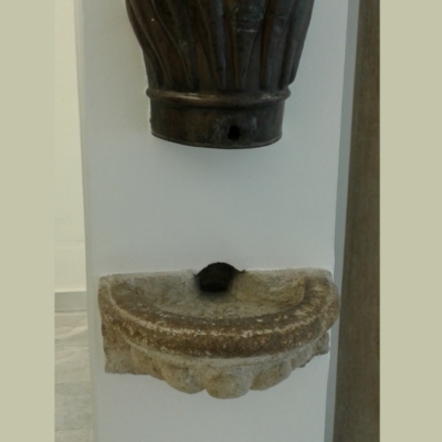 A Magyar Zsidó Múzeum első emeleti állandó kiállításában a falba szerelve látható egy mészkő kézmosó medence, fölötte vörösréz víztartállyal – olvasható a műtárgy ismertetése a Magyar Zsidó Múzeum mai hírlevelében.