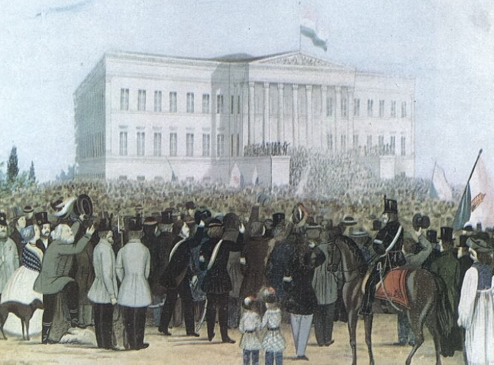 Ma reggel nyolcz órakor a Museum udvarán népgyűlés volt.  Gyűlés után a tömeg a városháza elébe tódult, s kívánta, hogy a zsidók közül azok, kik a  nemzetőrség sorai közzé be vannak írva, azonnal lefegyverkeztessenek, s egyátalában a zsidók közül mindazok, kik 1848-tól kezdve a törvényszéktől büntetve voltak, a városból kifizettessenek. Szomorú kórjelek. Nem tudjuk, ha azok, kik e jelenetekben zászlóvivők: ott voltak-e, midőn a szó a politicai jogok kivívásáról hangzék.