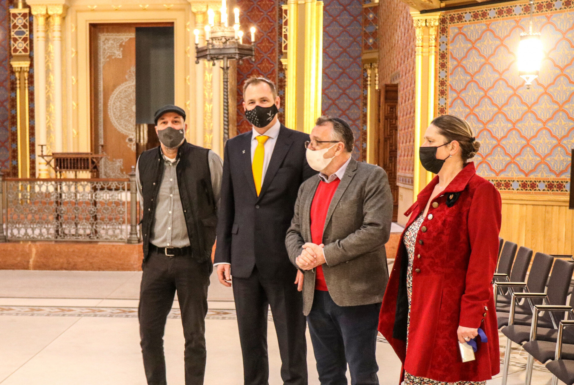 Kulcsár Krisztiánt, a MOB vezetőjét Heisler András, a Magyarországi Zsidó Hitközségek Szövetségének (Mazsihisz) elnöke és Kiss Henriett igazgató fogadta a felújított zsinagógában.