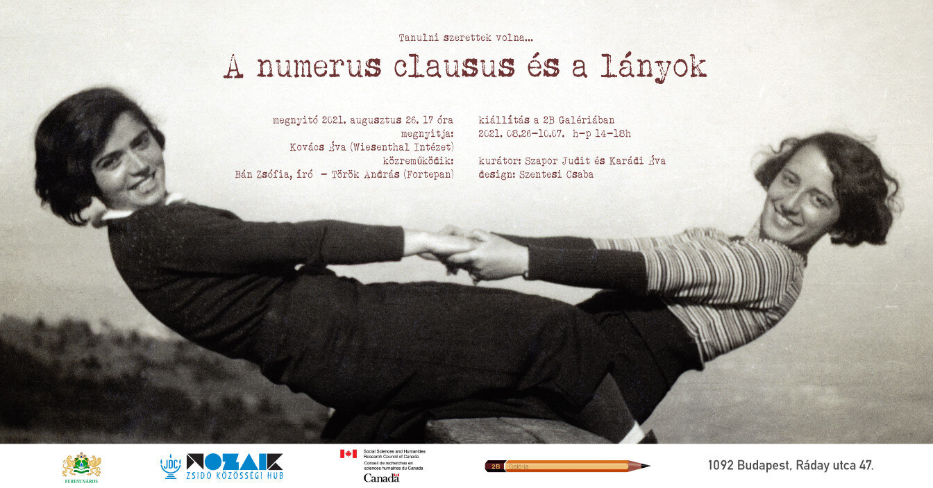 A budapesti 2B Galéria új kiállításának fényépein a numerus clausus által érintett zsidó lányok, nők jelennek meg. A tárlat Szapor Judit: „Antiszemitizmus a felsőoktatásban, nőemancipáció és zsidó asszimiláció” című kutatásához kapcsolódik, amelyet a Social Sciences and Humanities Research Council of Canada (Kanadai Társadalom- és humántudományi Tanács) támogat.