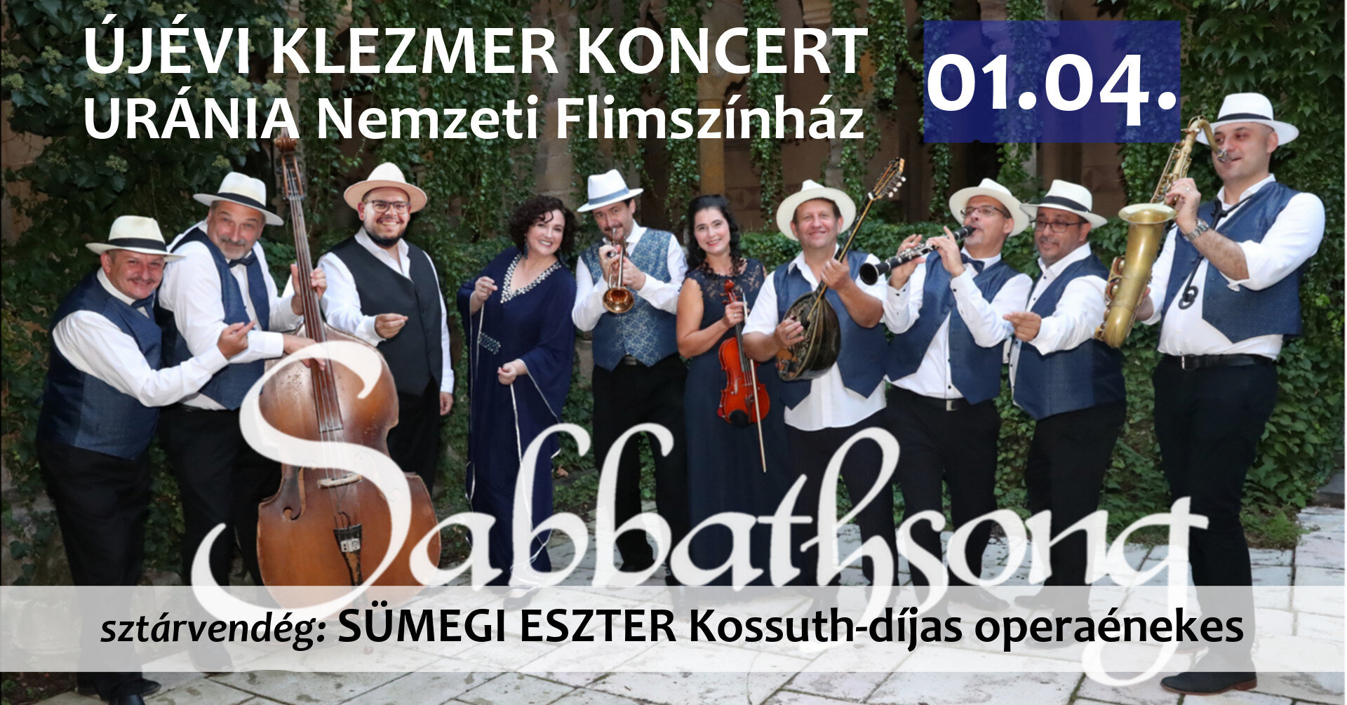 A Sabbathsong Klezmer Band az új esztendő alkalmából ezúttal is megtartja szokásos újévi koncertjét, amely az Uránia Nemzeti Filmszínházban (Budapest, Rákóczi út 21. szám) lesz 2024. január 4-én, csütörtökön este 7 órától.