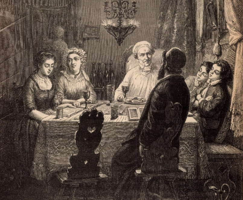 Az izraeliták húsvéti ünnepe címmel közölt ismeretterjesztő cikket a Kis Vasárnapi Újság 1873. április 20-án, s az íráshoz az utókor szerencséjére egy illusztrációt is beválogattak – így képet kaphatunk arról, hogy a XIX. század második felében milyen körülmények között élhetett egy jómódú zsidó polgári család. Legalábbis a német grafikus, Wilhelm Aarland elképzelései szerint, a cikk mellé választott mű ugyanis az ő munkája. Maga a cikk méltó arra, hogy kiemeljük a feledés homályából, hiszen meglehetősen pozitív képet adott a zsidóságról a korabeli magyar olvasóközönség számára. Íme.