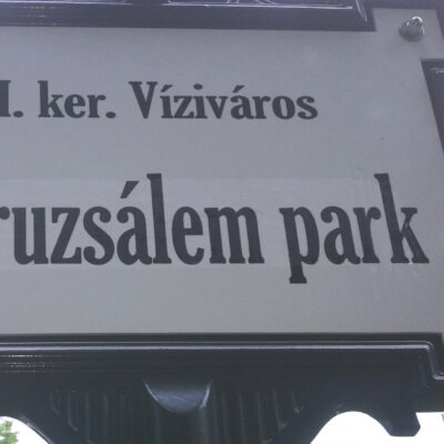 Viszont alant közlünk egy másik fotót is, amelyet ma kora délután készítettünk a Jeruzsálem parkban. Ezen az látszik, hogy Jeruzsálem nevét nem festették le, s vélhetően matricát sem ragasztottak rá.