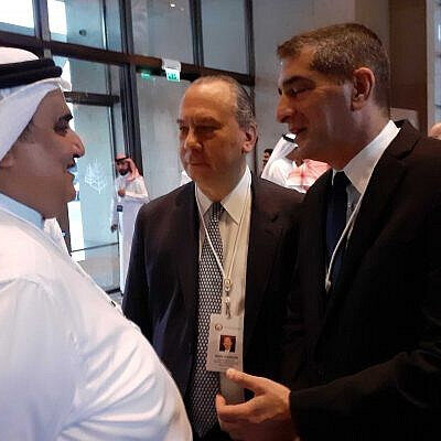Címlapkép: Khalid bin Ahmed Al Khalifa bahreini külügyminiszter (balra) Marc Schneier rabbi (jobbra) és a Shebát vezető Jicák Kreiss (középen) társaságában. Fotó: Raphael Ahren/Times of Israel