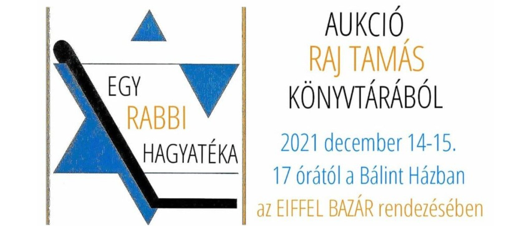 2021 december 14-én és 15-én 17 és 20 óra között, kétnapos aukciót rendeznek Raj Tamás rabbi könyvhagyatékából.