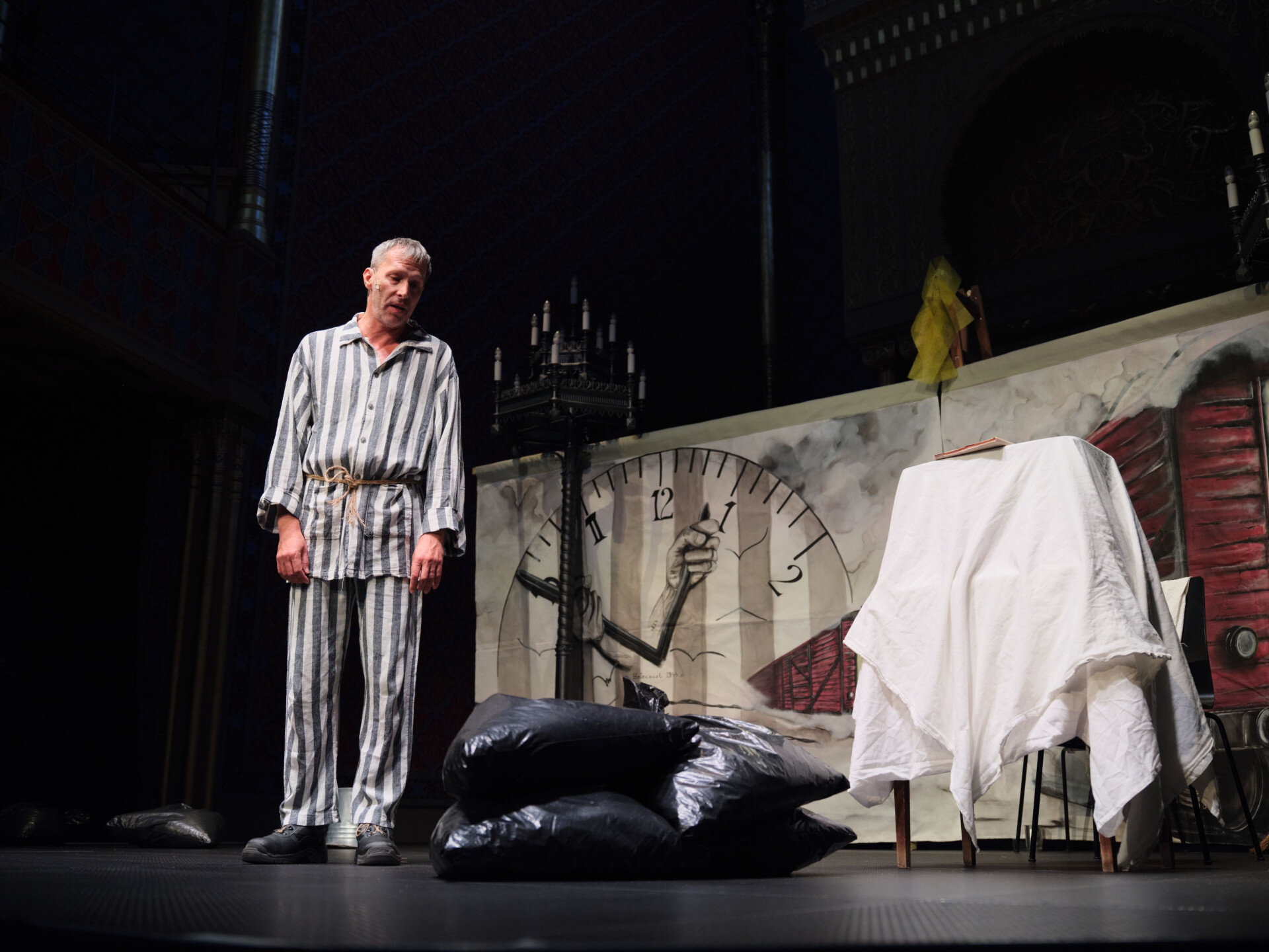 – Ma, amikor felidézzük a holokausztot, az emberi természet legsötétebb rétegeivel kell szembenéznünk, és azokkal a kérdésekkel, amelyekre nincs végleges válasz. Ezért gyűltünk össze ma este a Borowski-darab előadására, amely nem klasszikus színházi értelemben vett színdarab. Nem kínál katarzist, nem ad vigaszt. A szöveg alapjául szolgál az a Borowski-mű szolgál, amelynek eredeti címe szó szerinti fordításban ez: Hölgyeim és uraim, szíveskedjenek a gázkamrába. Ennél kegyetlenebb cím talán nem is létezhetne. De pontosan ez Borowski hangja. Nem beszél mellé, kimondja az igazságot. Az ő szövegeiben nincs költőiség, csak a rideg valóság – többek között e szavakkal vezette föl dr. Grósz Andor Mazsihisz-elnök a Kazán István Kamaraszínház vendégjátékát tegnap este a Rumbach-zsinagógában. Az előadás dramaturg-rendezője Kriszt László, művészeti menedzsere Rosenfeld Dániel Imre, az előadó pedig Kovács Molnár József volt.