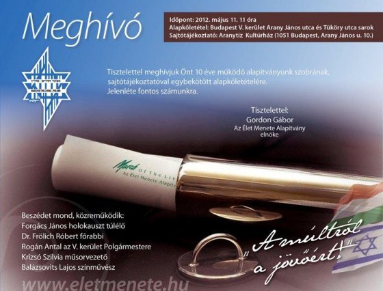 Tisztelettel meghívunk minden kedves érdeklődőt az Európai Béke napján, az Élet Menete Alapítvány alapkőletételére, s az utána következő sajtótájékoztatóra, melyre működésünk 10. évfordulója alkalmából kerül sor, 2012. május 11-én, pénteken, délelőtt 11 órától.