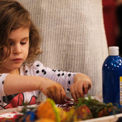 A „zöldség és gyümölcs szobrász” asztalnál baglyok, sünik és különböző vicces növény és állatformák készültek. És persze nem maradhatott el a kreatív kitűző készítés. A lemosható csillámtetkók állomáson sorba álltak a gyerekek (és a szülők).