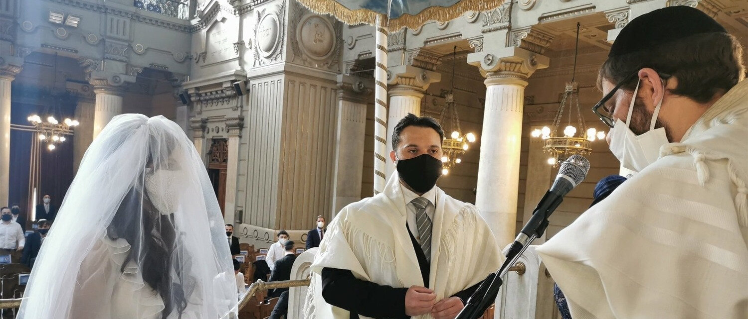 A Római Nagy Zsinagógában megtartották, maszkos menyasszonnyal, vőlegénnyel, rabbival és násznéppel, az első zsidó poszt-Covid zsidó esküvőt.