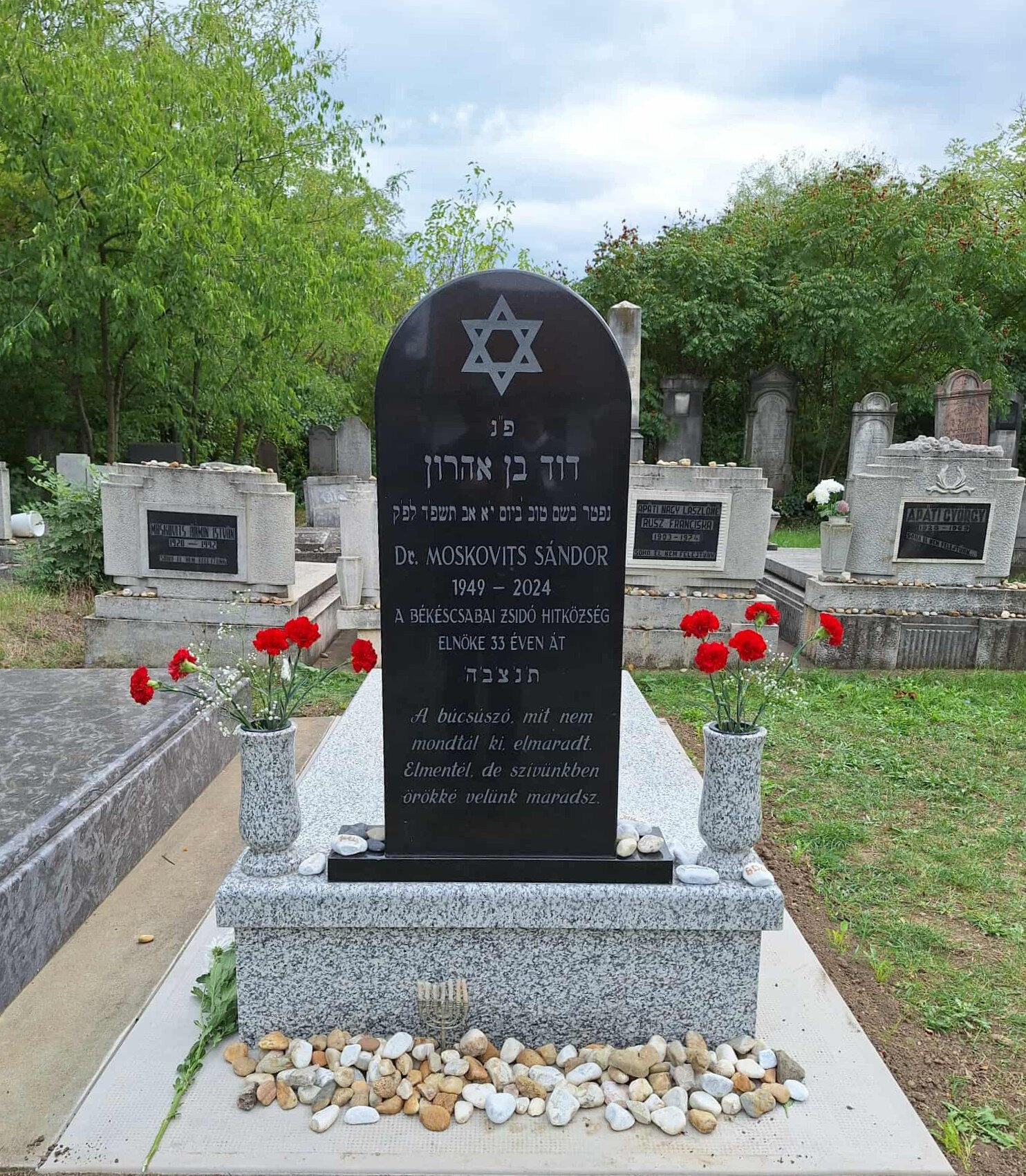 A család, a barátok és a hitközség tagjainak körében avatták fel tegnap a helyi zsidó közösség volt elnökének síremlékét a békéscsabai Csendes utcai temetőben. Dr. Moskovits Sándor – az édesapját követve – 1991-től halálig, 2024-ig vezette a Békéscsabai Zsidó Hitközséget. Emléke legyen áldott!