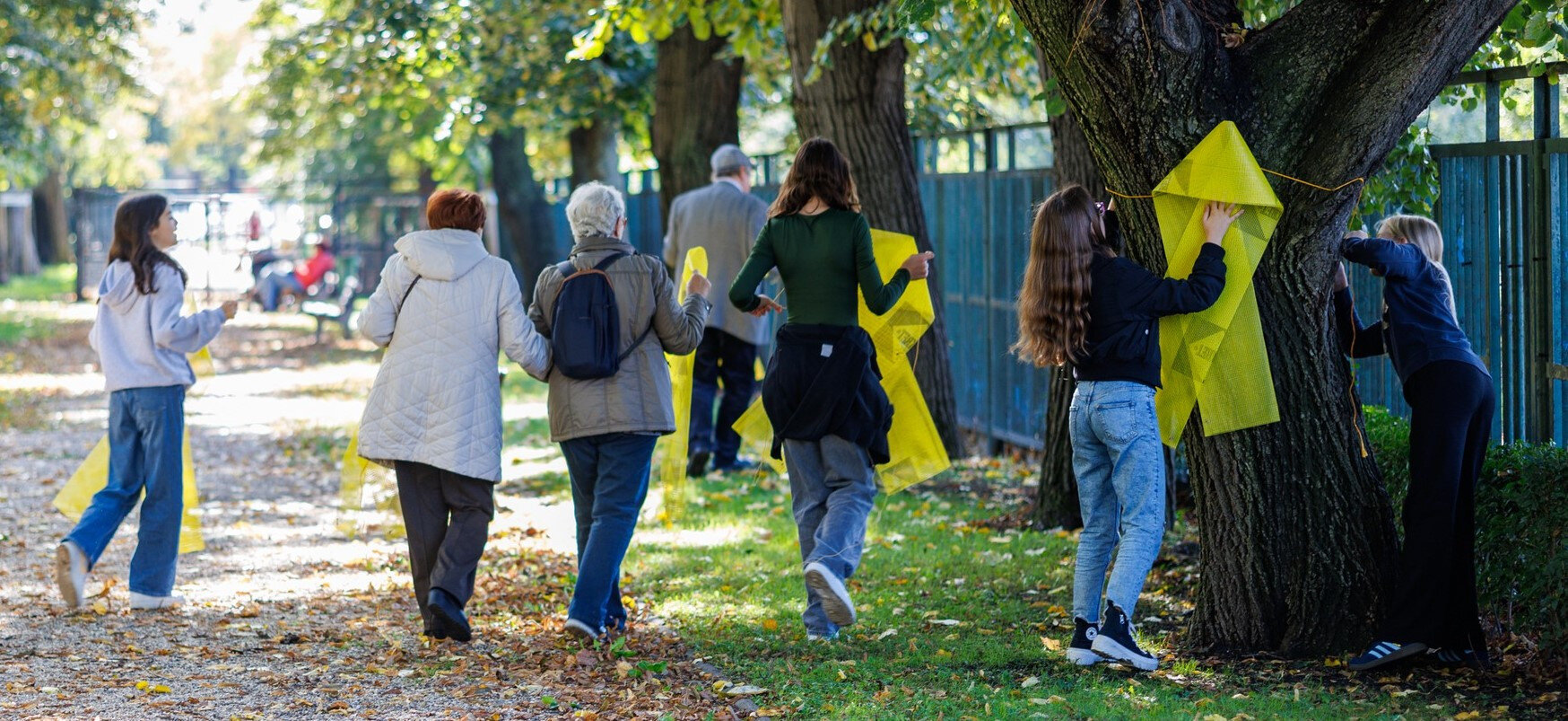 Sárga szalagokkal találkozhatnak a Dohány utcai zsinagóga előtti fákon, a XII. kerületi Lauder iskolában, az Erzsébetvárosi Zsidó Történeti Tár Csányi utcai épületén is.