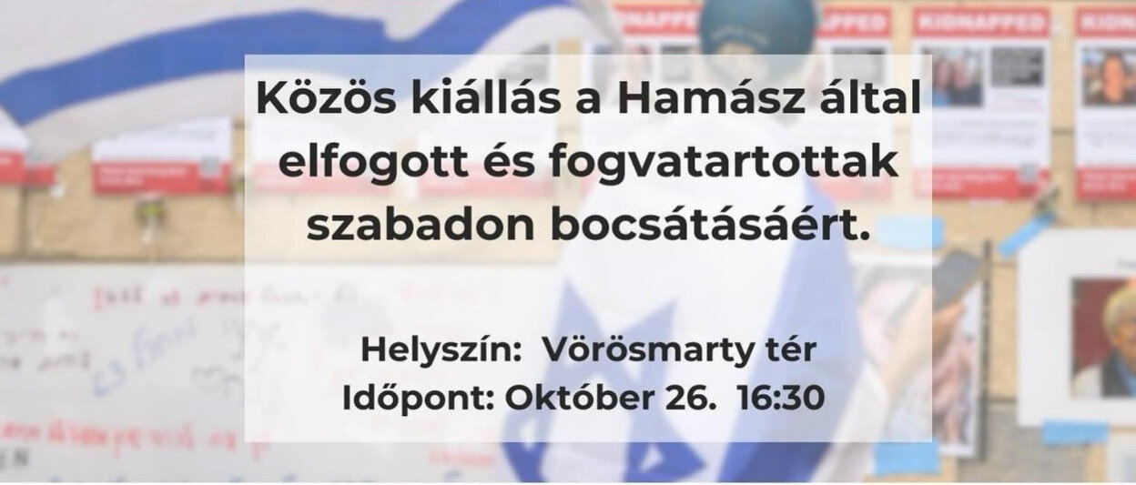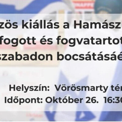 Magyarországi civil szervezetek 2023. október 26-án, csütörtökön 16.30 órakor Budapesten, a Vörösmarty téren közös szolidaritási rendezvényt szerveznek a Hamasz terrorszervezet által fogva tartottak szabadon bocsátásáért.
