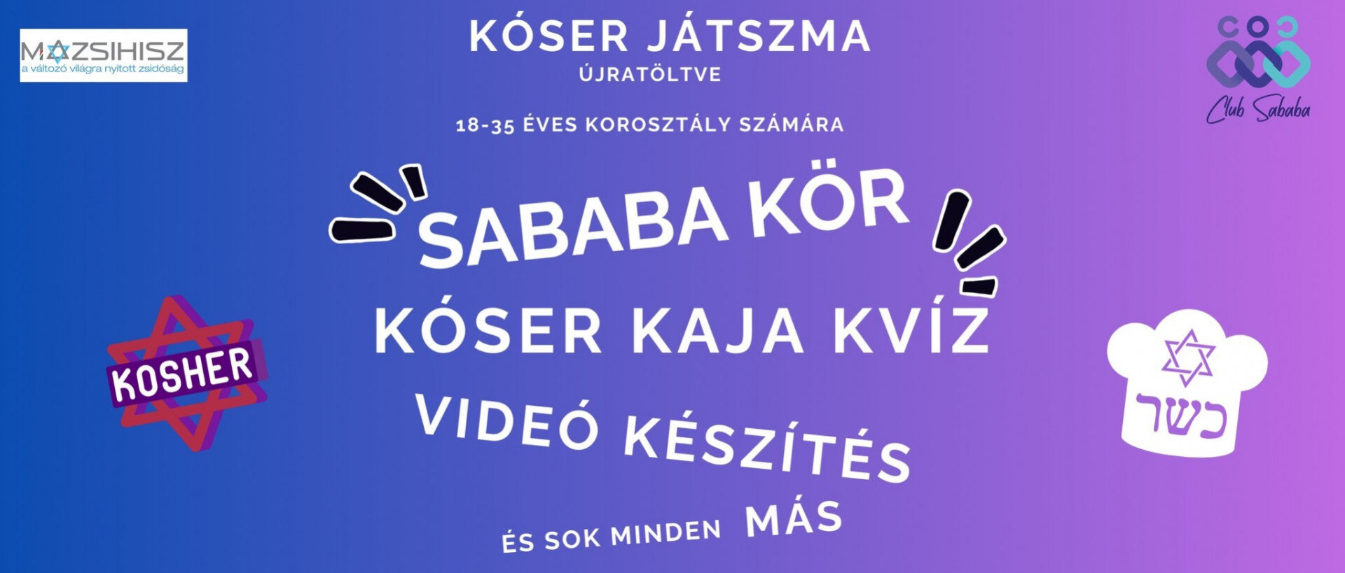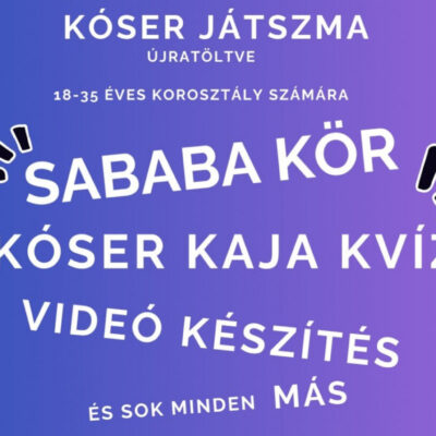 Ami biztosan lesz – kóser finomságok kvízek, Sababa kör, telefonos videókészítés, szuper csapatjátékok, nyereményjáték és sok minden más. Persze a jókedv és a bulihangulat garantált.