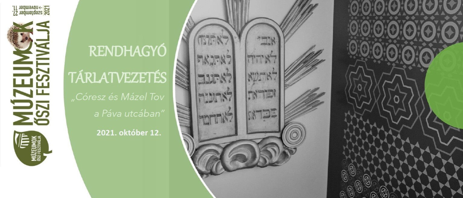 A Holokauszt Emlékközpont (Budapest IX. ker., Páva utca 39.) minden érdeklődőt szeretettel vár 2021. október 12., kedden délután 5 órakor a „Córesz és Mázel Tov a Páva utcában” című időszaki kiállítás rendhagyó tárlatvezetésére az Emlékközpont zsinagógaterébe. A programon való részvétel ingyenes, regisztrációhoz kötött. Részvételi szándékát kérjük / IDE KATTINTVA jelezze.