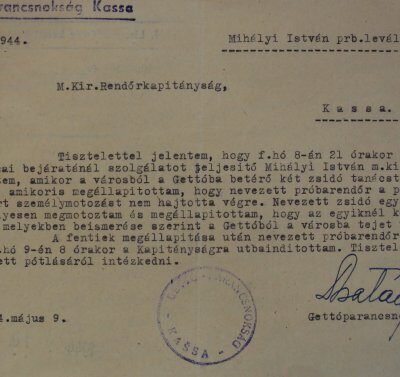 A sajtótájékoztatón több olyan dokumentumot is bemutattak, amelyen Csatáry László aláírása alatt „gettóparancsnok” titulus szerepel. (Csatáry László a Magyar Hírlapnak néhány napja azt nyilatkozta, „a deportálásokban nem vettem részt, a két kassai gettónál mindössze négyszer jártam, az oda zárt zsidók fölött pedig nem a rendőrség, hanem a németek diszponáltak”.)