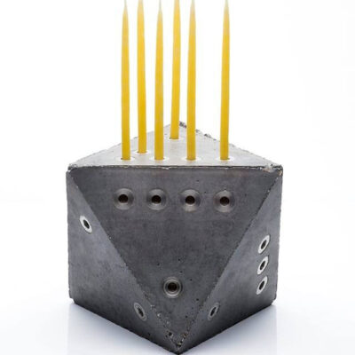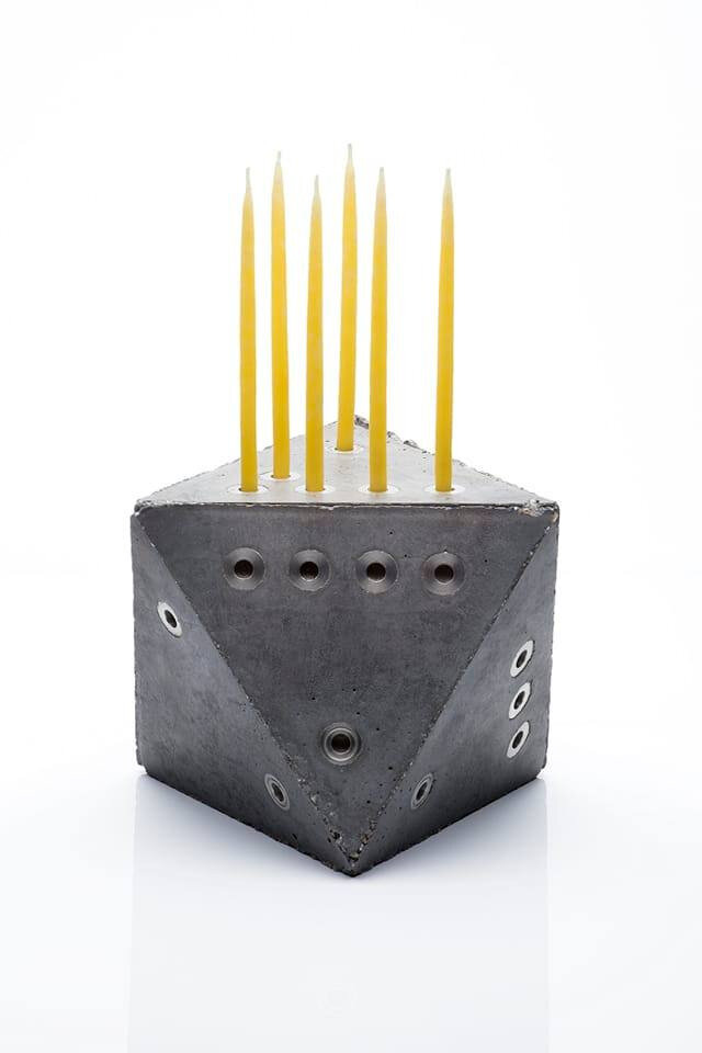 A hanuka nyolc napjára utaló oktaéder alakú tárgy megfelel a hanukai lángok meggyújtásához szükséges szabályoknak, ugyanakkor formájában és anyaghasználatában egyaránt kortárs darab – olvasható a posztban.