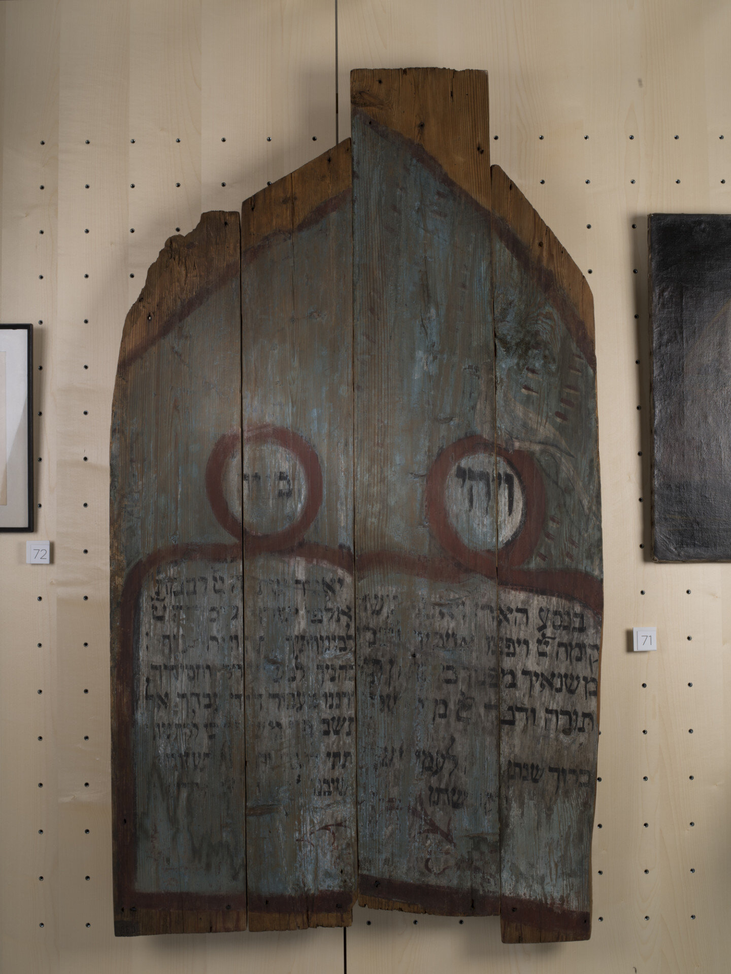 A fenti képen látható, 1780-ból származó festett deszkaelemeket Balázs György 1941-ben szállította a budapesti zsidó múzeumba, ahol azokat a marosvásárhelyi zsidó hitközség ajándékaként leltározták. A becses tárgyat Kovács Levente és Ördög Edit restaurálta 2016-ban.