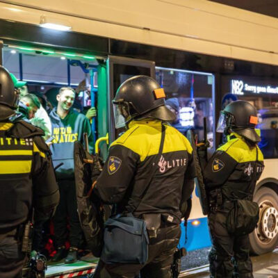 Mazsihisz-összefoglaló a Magyar Távirati Iroda (MTI) tudósításai alapján. Fotó:  Busz köré vonnak biztonsági kordont rendőrök Amszterdamban 2024. november 8-án hajnalban, miután izraeli szurkolókra támadtak feltehetőleg palesztinpárti tüntetők a labdarúgó Európa-ligában játszott Ajax Amsterdam-Maccabi Tel-Aviv mérkőzést követően. MTI/EPA/ANP/VLN Nieuws