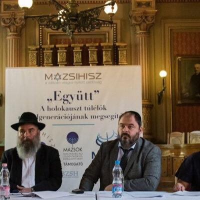 Heisler András, a Magyarországi Zsidó Hitközségek Szövetsége (Mazsihisz) elnöke, Szabó György, a Magyarországi Zsidó Örökség Közalapítvány (MAZSÖK) elnöke, Radnóti Zoltán főrabbi és a program gazdái, Szenthe Antónia és Kósa Judit tartott sajtótájékoztatót a holokauszt túlélőinek gyerekeit segítő, most elinduló másodgenerációs projektről.