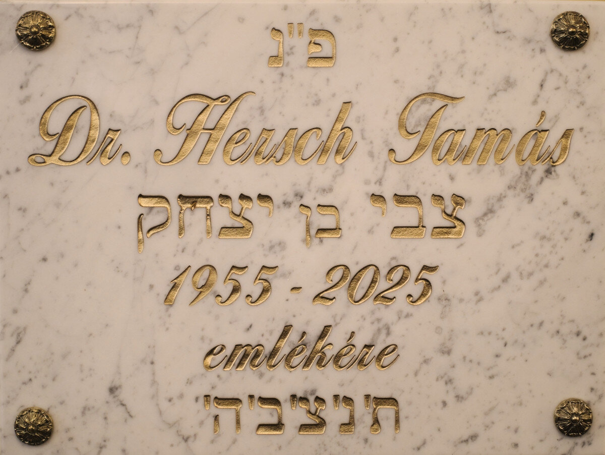 A Hegedűs Gyula utcai zsinagógakörzet – amelynek egyik elöljárója volt – emléktáblát avatott az izraeli otthonában idén elhunyt dr. Hersch Tamás tiszteletére. A múlt pénteki ünnepségen beszédet mondott Mester Tamás, a Magyarországi Zsidó Hitközségek Szövetsége (Mazsihisz) alelnöke, a Budapesti Zsidó Hitközség (BZSH) elnöke is, aki azt mondta: „Tamás nagyon hiányzik, hiszen ő az az ember volt, akire éjjel-nappal lehetett számítani”.