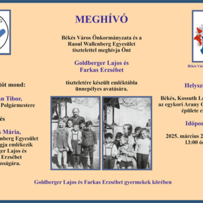 Emléktáblát avatnak Békésen Goldberger Lajos és Farkas Erzsébet tiszteletére