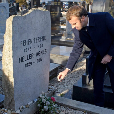 Emmanuel Macron a Kozma utcai zsidó temetőben Heller Ágnesre emlékezett