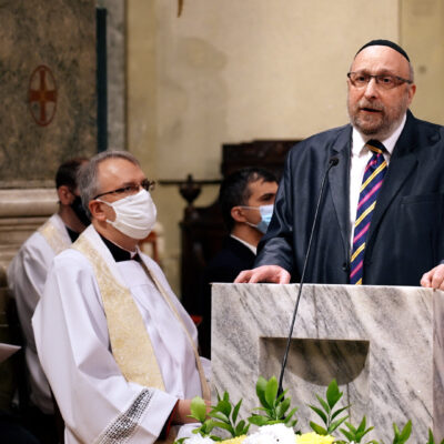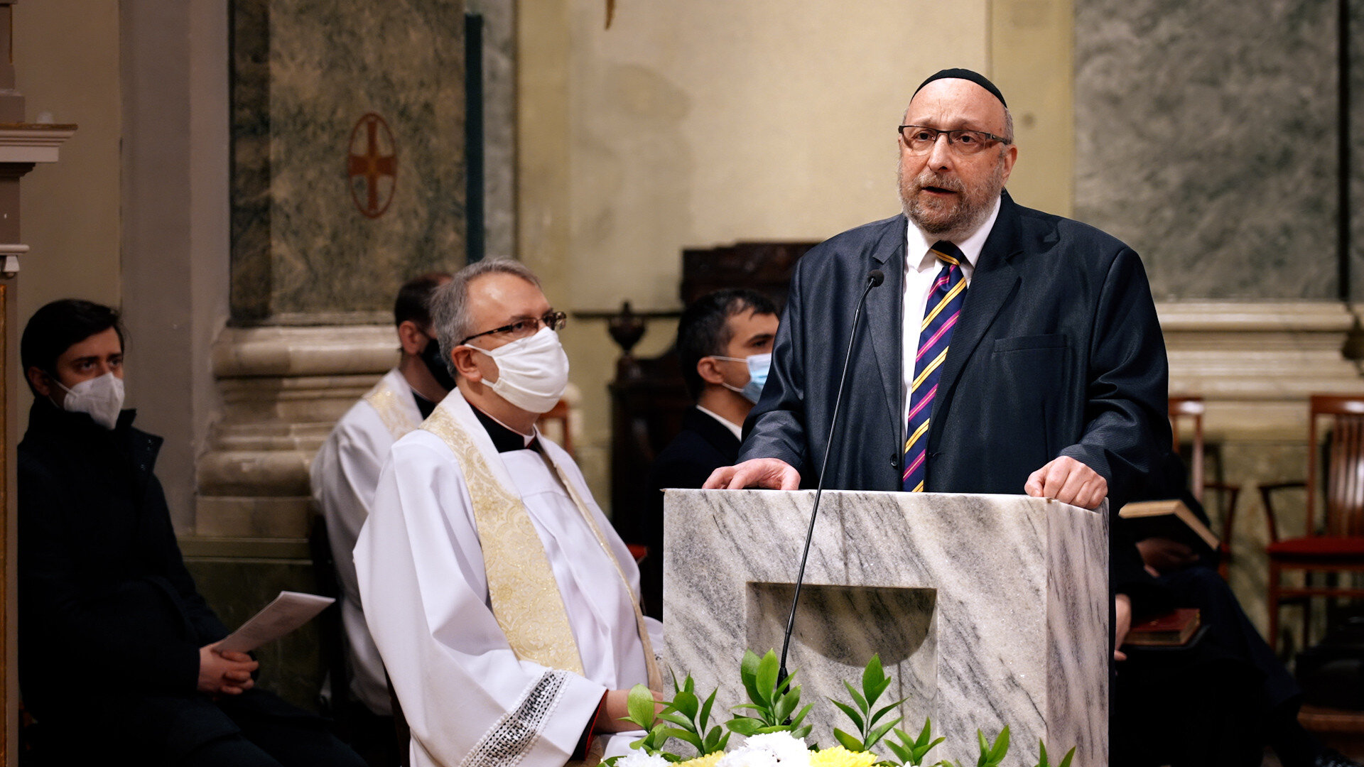 A bíboros elmondta: „a kölcsönös tisztelet és szeretet alapján együtt kell képviselnünk alapvető értékeinket egy olyan világban, amely kevés megértést tanúsít ez iránt az üzenet iránt. Ma aggasztóan szaporodnak egyes országokban az antiszemitizmus és a keresztények elleni gyűlölet és erőszak megnyilvánulásai, de megmutatkoznak a kölcsönös megértés és szolidaritás jelei is”. Beszédét így zárta: „ez mindig bátorít és megerősít minket abban a felismerésben, hogy testvérek vagyunk”.