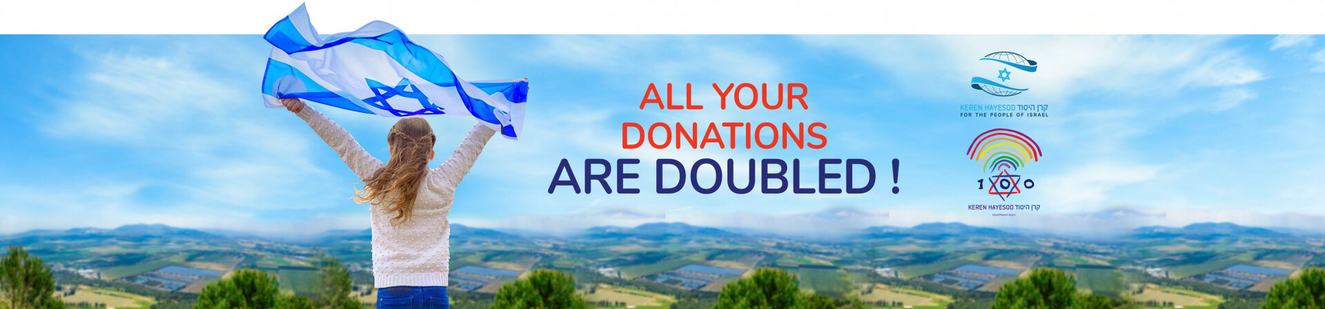 Az idén 100 éves Keren Hayesod 48 órás európai adománygyűjtő akciót indít szeptember 13-15 között. Céljuk, hogy 2 millió euró összegyűjtésével segíthessék Izraelt a Keren Hayesod projekteken keresztül. Most minden adomány duplán számít, mert egyes adományozók vállalták az összegek megkettőzését.