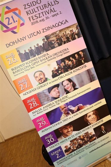 Az idei 21. Zsidó Kulturális Fesztiválról tartottak csütörtökön sajtótájékoztatót a budapesti Goldmark teremben, ahol a hitközségi vezetőkön kívül jelen volt számos fellépő művész is. A rendezvénysorozat augusztus 26-án kezdődik, és szeptember 2-ig tart.