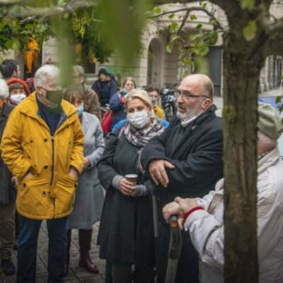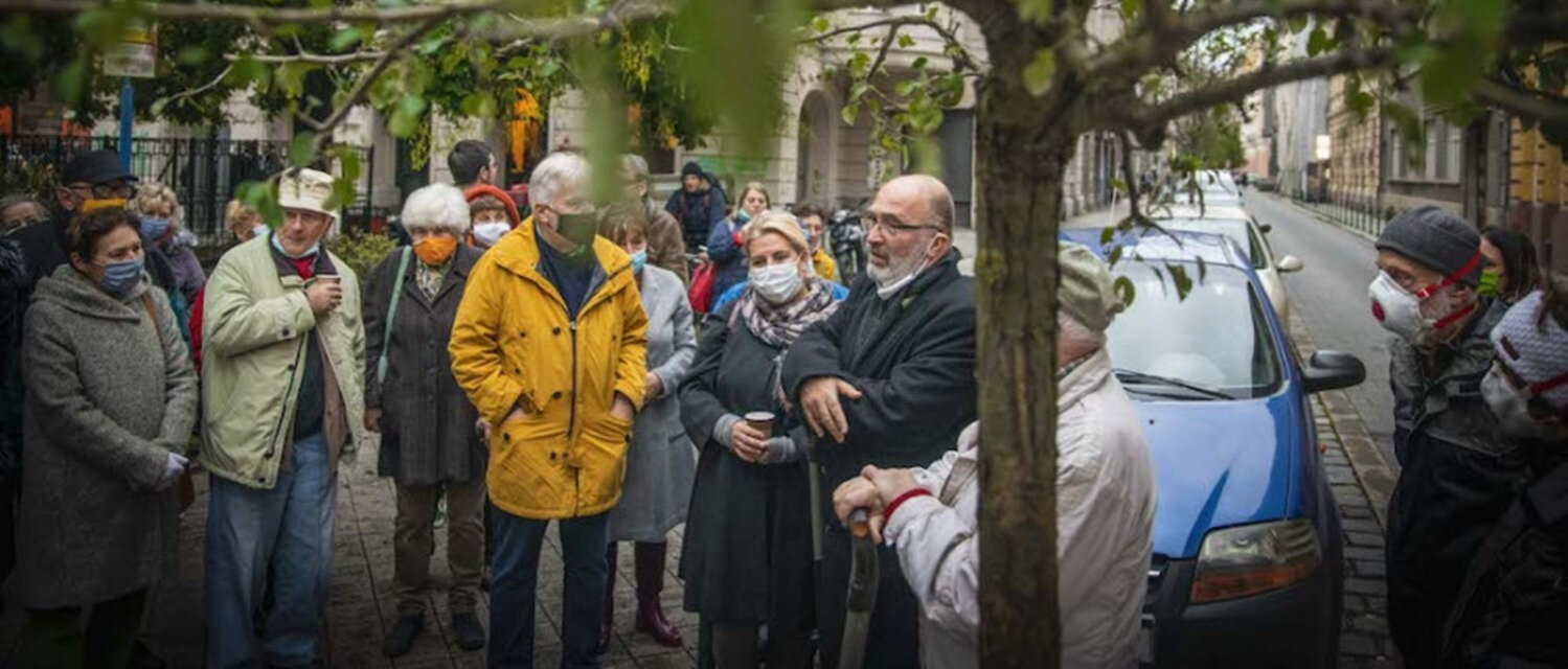 Ágnes emlékére Józsefvárosban. A faültetést a Magyar Zsidó Kulturális Egyesület