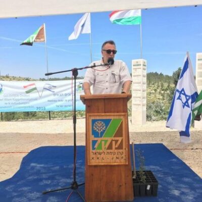 A mesterségesen létrehozott erdő melletti ünnepségen a Mazsihisz Heisler András (képünkön) elnök vezette delegáció, a helyi magyarok képviselői, valamint a Zsidó Nemzeti Alapítvány (Keren Kajemet Liszrael, KKL) küldöttsége vett részt.