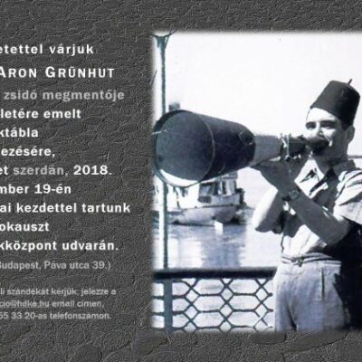 A budapesti Páva utcai Holokauszt Emlékközpontban december 19-én, szerdán 11 órakor leplezik le Aron Grünhut emléktábláját. A pozsonyi zsidó üzletember embermentő tevékenysége megérdemli, hogy szélesebb körben ismertté váljon, hiszen nagyon sokan köszönhetik az életüket neki.