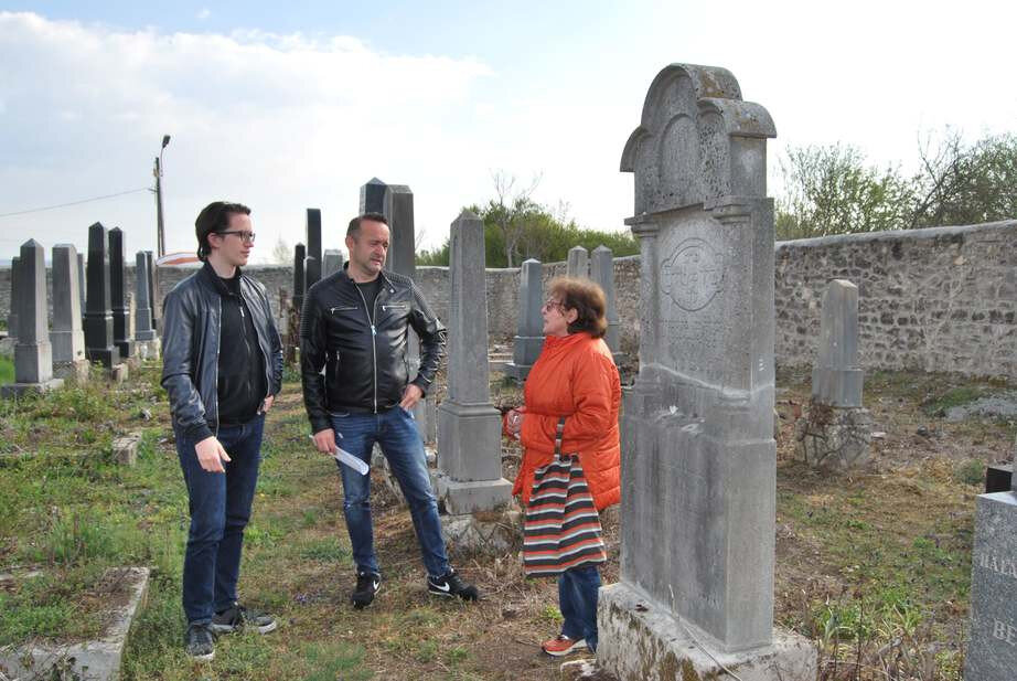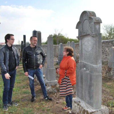 (Címlapkép: Középen Neszler Imre a tapolcai zsidó temetőben. Fotó: Tóth B. Zsuzsa/Napló)