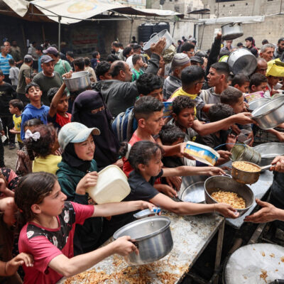 Borítókép: ételosztás a Gázai övezet közepén fekvő Nuszejrat menekülttáborban. Fotó: Ejad Baba / AFP via Times of Israel