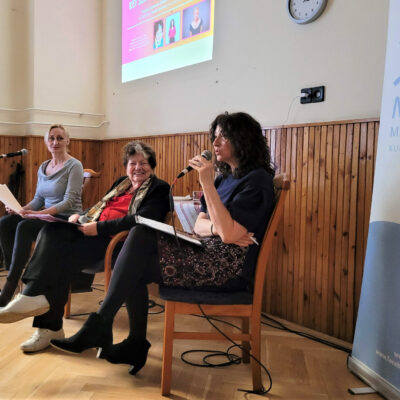 A költészet napja alkalmából Gergely Ágnes költővel, műfordítóval hallhattunk remek beszélgetést tegnap a Magyar Zsidó Kulturális Egyesület (Mazsike) új, Munkácsy Mihály utcai székhelyén, ahol ez az előadás volt az első nyilvános rendezvény. A költővel Winkler Nóra beszélgetett, a szerző műveiből Takáts Andrea olvasott föl. Ott jártunk és ámultunk.