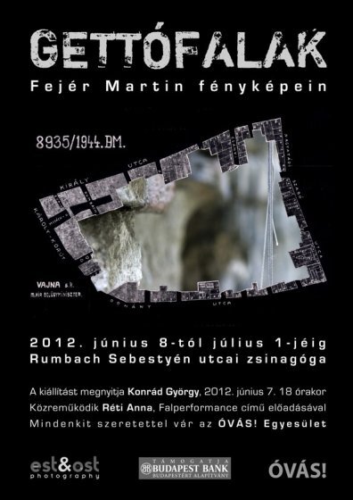 Az ÓVÁS! Egyesület minden érdeklődőt szeretettel vár Martin Fejér GETTÓFALAK című fotókiállítására, a Rumbach Sebestyén utcai zsinagógába (Budapest VII. ker., Rumbach Sebestyén u. 11-13.): 2012. június 7-én, csütörtökön 18.00 órakor.