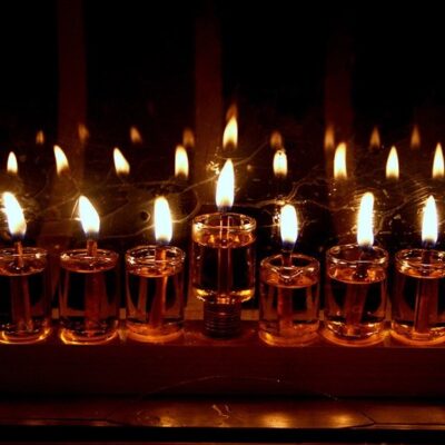 A hagyományos irodalom nem őrizte meg a történelmi eseményeket, csupán egy csodának az emlékét. Amikor a makkabeusok bevonultak a Szentélybe, csak egy korsónyi olajat találtak. Ez egy napra lett volna elegendő. Csoda történt, és nyolc napig tartott ki. Ezért nyolc napon át gyújtanak gyertyákat. mécseket növekedő vagy csökkenő sorrendben. A chanukkai lámpás, a Menóra nyolcágú, hogy ne legyen azonos a Szentélyével, amelyik hét ágú volt.