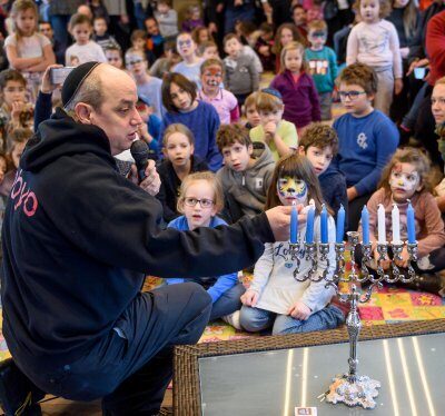 A hanuka nyolcadik napja alkalmából a Verő Tamás gyújtotta meg a hanukia fényeit, amelyek (nemhiába, szuper egy rabbi) egészen a rendezvény végéig kitartottak. Akárcsak a gyerekek, pedig a programokat úgy adagolták, hogy lehetőleg mindenki fáradjon az ebéd utáni csendes pihenő idejére: volt ének és pörgés a Buborék együttessel, aztán közös tánc és riszálás profi közreműködőkkel többek közt a Riszálom úgyis-úgyis dallamára.