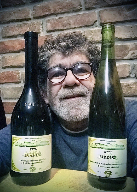 Brüll György a hanukára ajánlott, rabbinikus pecséttel ellátott boraival