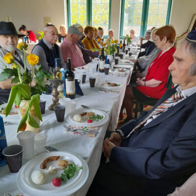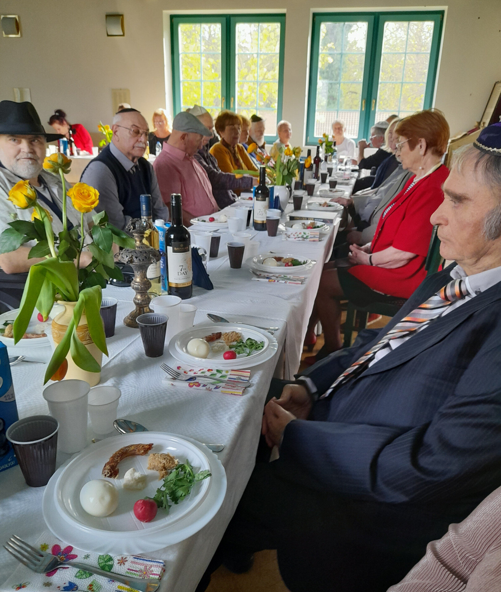 „Hosszú idő után egy jól sikerült, családias hangulatú széderrel nyitott újra a Békéscsabai Zsidó Hitközség. Képünkön április 15-én, az ünnep kezdete előtti pillanatokban ismét együtt ülhetnek a közösség tagjai és vendégei a gondosan előkészített asztalok körül. A szédert a közösség elöljárósági tagja, dr. Balogh István judaisztika tanár vezette le” – tájékoztatta honlapunkat a Békés megyei megyeszékhelyről Lukácsné Moskovitz Tamara.