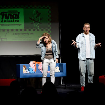 Az esti előadás előtt Bíró Eszter, a Mazsihisz művészeti vezetője és a HanukaFeszt megálmodója osztotta meg gondolatait az idei hanuka kettősségéről: az ünnep fényéről és csodájáról, valamint az ausztráliai antiszemita támadás áldozatairól való megemlékezés fontosságáról. Ezt követően Samuel Eisenberg, a Keren Kayemet LeIsrael magyarországi képviselője és az idei HanukaFeszt egyik főtámogatója beszélt az ünnep jelentőségéről, majd dr. Balázs Gábor szólt a kortárs izraeli színház egyik meghatározó eleméről, az abszurd humor lényegéről és erejéről.