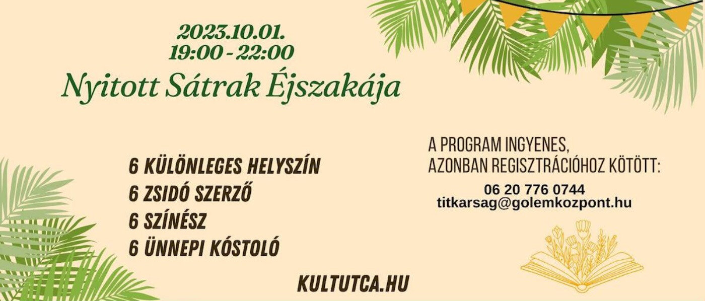 Az idei szukot – sátrak ünnepe harmadik estéjén 2023. október 1-én, vasárnap este 7 órától egy különleges irodalmi programra invitál minden kedves érdeklőt a Zsidó Budapest 150 Éve programsorozat és partnerei az Erzsébetvárosi Önkormányzat és a Gólem Színház.