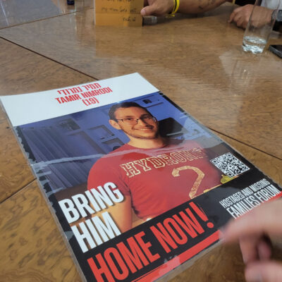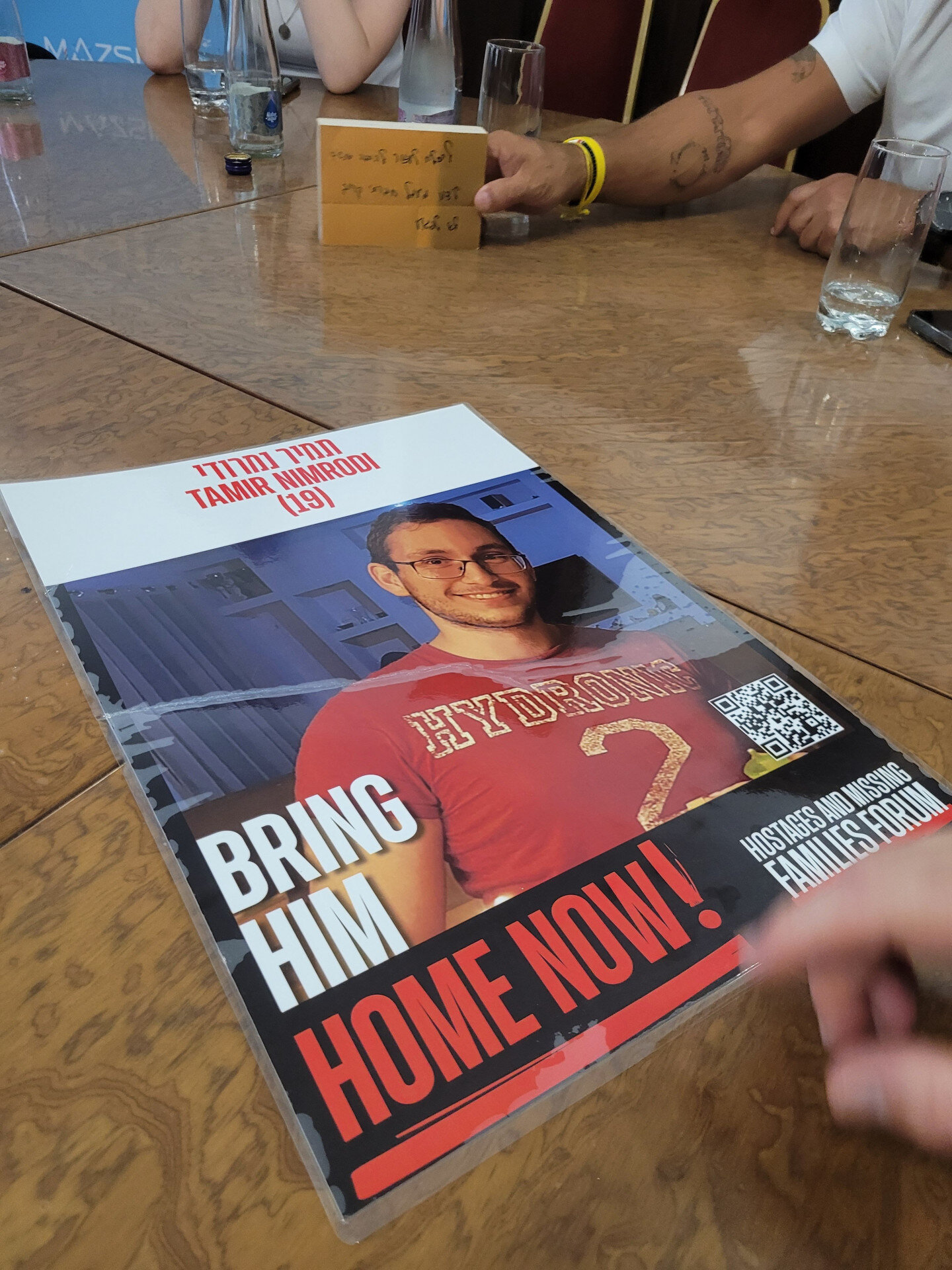 „Holnap érkezik két család Budapestre. Az egyik Tamir Nimrodi édesapja és annak élettársa. Ő katonaként túsz Gázában, remélhetőleg még életben van, de túl sok bizonyíték nincs rá. A másik Shay Levinson, szülei és testvére, őt is katonaként hurcolták Gázába, tavaly azonban megerősítették a halálát, holtteste viszont azóta is Gázában van. Profi röplabdás volt.”