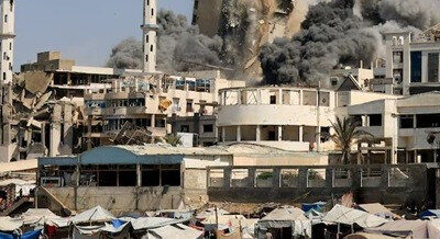 Címlapkép: Füst emelkedik az Al-Ghefari toronyból, miután izraeli légitámadás érte. REUTERS/Dawoud Abu Alkas